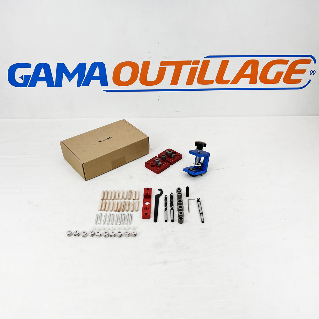 GAMAOUTILLAGE vous propose une GUIDE PERCAGE BOIS X-180, est un positionnement professionnel et d’un outil de fourrage de trou pour le travail du bois et la fabrication de meubles. Il est de taille mini, facile à utiliser, vous aidant à percer des tres rapidement et avec précision. Fabriqué en métal de première qualité, le guide de fourrage est de haute résistance, résistant à l’usure et longue durée. Avec tous les accessoires nécessaires, ce kit de guide de fourrage rendra certainement votre projet de menuiserie sans effort.