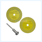 Jeu de 2 disques diamant Ø50 mm avec axe, idéal pour découpe précise du verre, céramique et plastique. Vitesse max 20 000 tr/min.