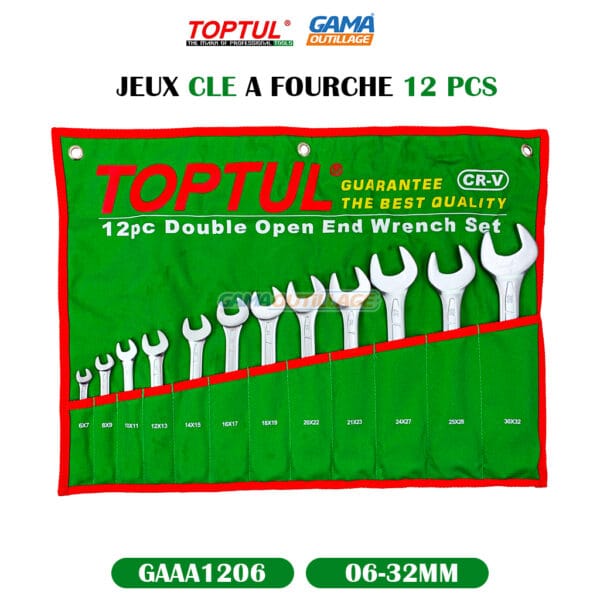 GAMAOUTILLAGE vous propose une JEUX CLE A FOURCHE 12 PCS 6-32 TOPTUL, est un ensemble d’outils essentiel pour tout bricoleur ou mécanicien. Il comprend une large gamme de clés à fourche, de 6 à 32 mm, pour répondre à tous vos besoins. Les clés sont fabriquées en acier au chrome vanadium de haute qualité, ce qui les rend durables et résistantes à la corrosion.