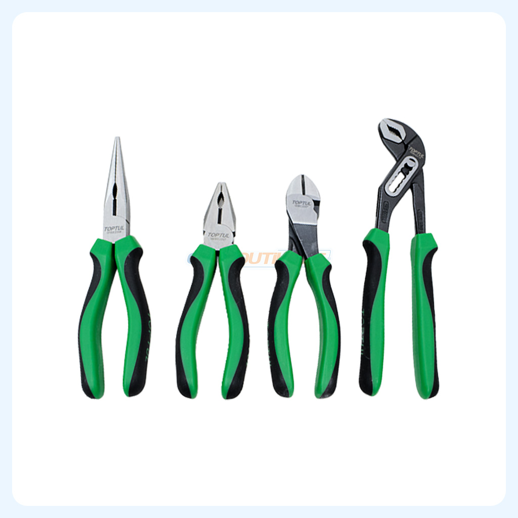 Le jeu de pinces 4 pièces TOPTUL GAAE0402 est un ensemble professionnel conçu pour répondre aux besoins quotidiens en maintenance, mécanique et travaux d’atelier. Fabriquées en acier Chrome Molybdène, ces pinces offrent une excellente résistance, une longue durée de vie et une performance fiable pour les travaux de serrage, de coupe et de maintien.