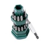 - 24 embouts de tournevis, L = 25 mm – Phillips: 2 pièces de PH1, 2 pièces de PH2, 2 pièces de PH3, Pozidrive: 2 pièces de PZ1, 2 pièces de PZ2, 2 pièces de PZ3, Fendue: 2 pièces de 4 mm, 2 pièces de 6 mm, 2 pièces de 7 mm, Torx: 2 pièces de T20, 2 pièces de T25, 2 pièces de T30