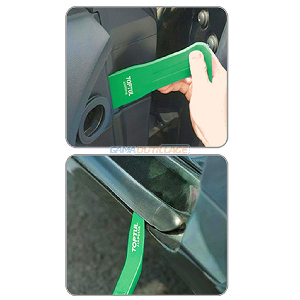 - Idéal pour retirer les garnitures, les joints en caoutchouc, les garnitures intérieures, les panneaux de porte, le panneau de tableau de bord, les interrupteurs, etc.
