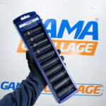 - Jeu complet de 10 douilles longues couvrant les tailles courantes.