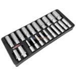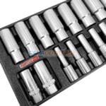 JEUX DOUILLE LONGUE 22PCS TOPTUL, est un ensemble d’outils complet et polyvalent, parfait pour une variété d’applications. L’ensemble comprend une gamme de douilles de tailles différentes.
