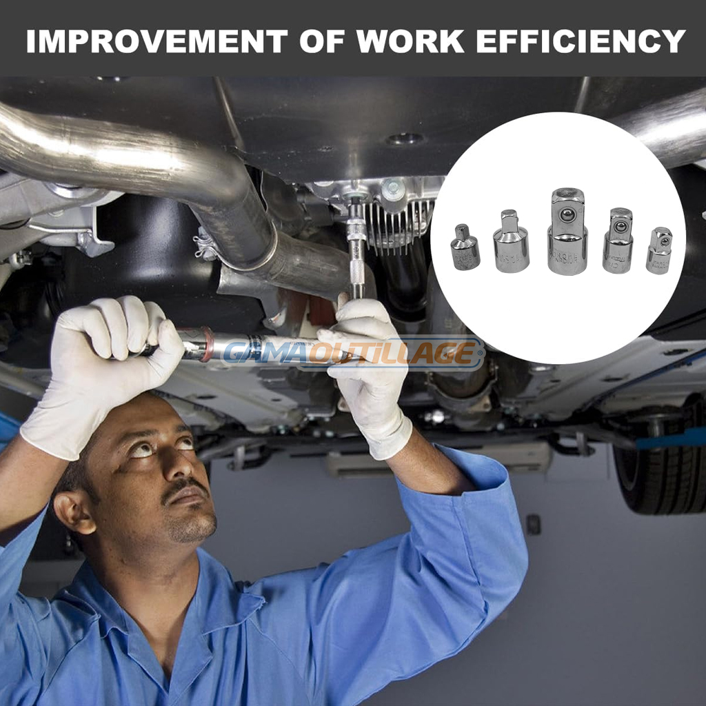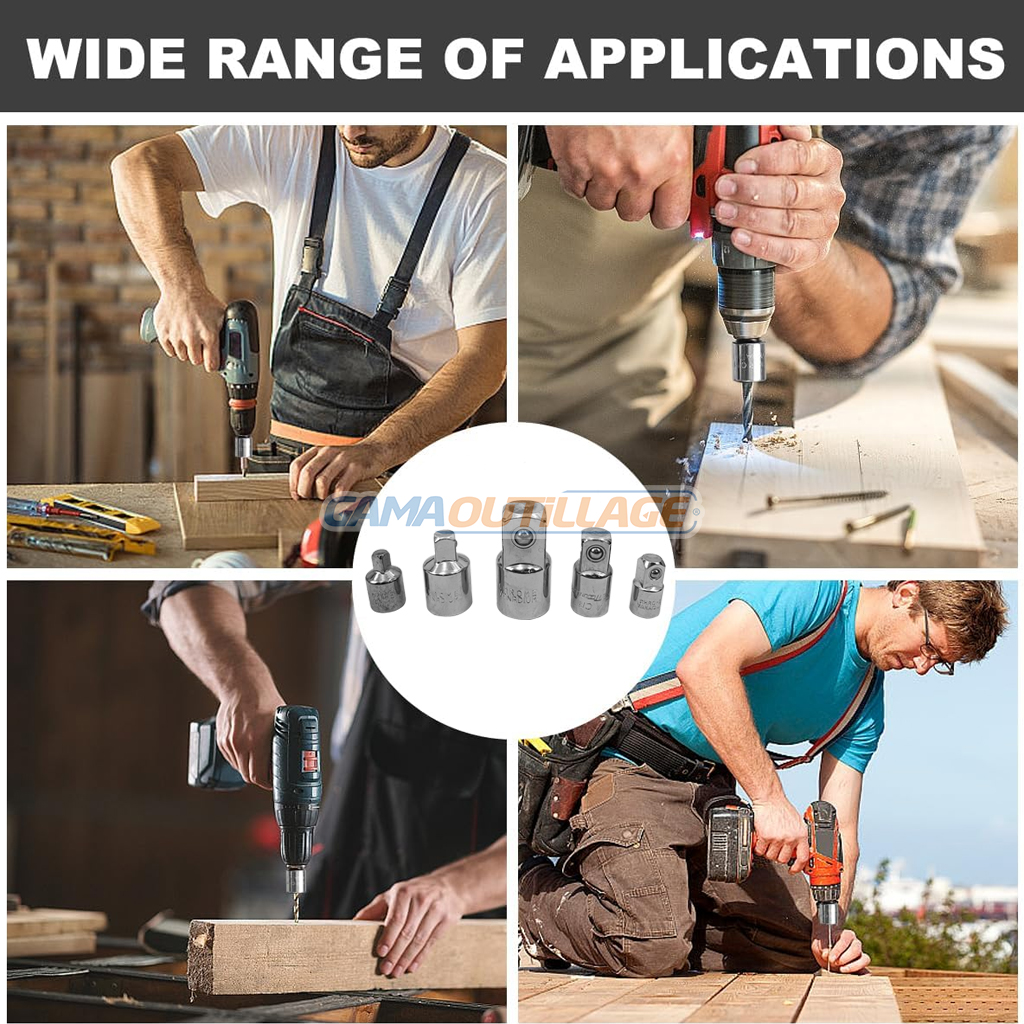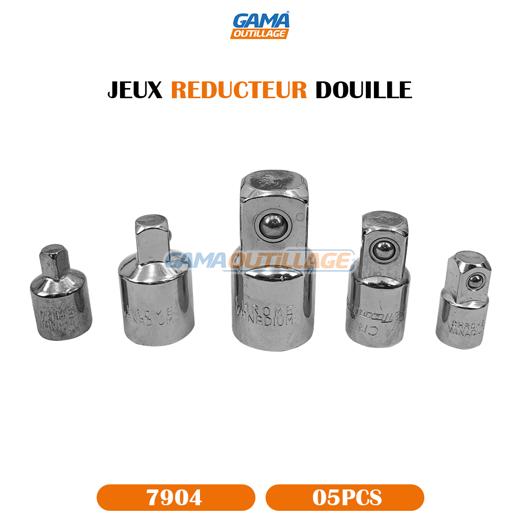 - Tailles des douilles: 3/8-1/4, 1/2-3/8, 1/2-34, 3/8-1/2, 1/4-3/8