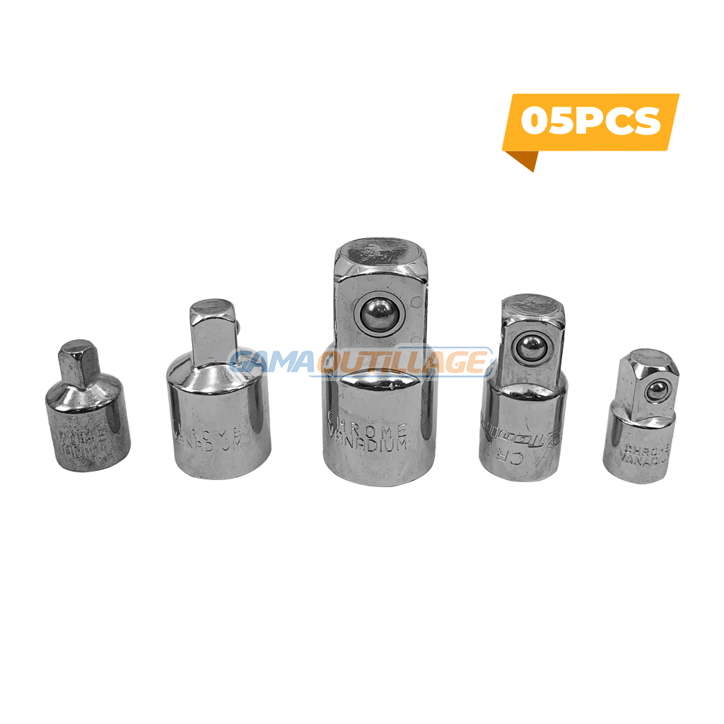 GAMAOUTILLAGE vous propose une JEUX REDUCTEUR DOUILLE 05PCS TA, est un ensemble de 5 douilles adaptatrices qui permettent de connecter des outils de différentes tailles à une même clé ourallonge. Cet ensemble est idéal pour les bricoleurs et les professionnels qui ont besoin d’une grande polyvalence dans leurs travaux.