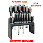JEUX TOURNEVIS 18PCS CROWN, est un ensemble de tournevis complet et polyvalent qui vous permettra de réaliser tous vos travaux de bricolage. Il comprend une variété de tournevis à tête plate et cruciforme.