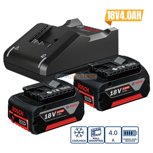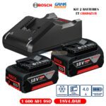 KIT 2 BATTERIES 18V4.0AH +CHARGEUR BOSCH, est un ensemble conçu pour optimiser l’utilisation de vos outils électriques sans fil de la même gamme de tension.