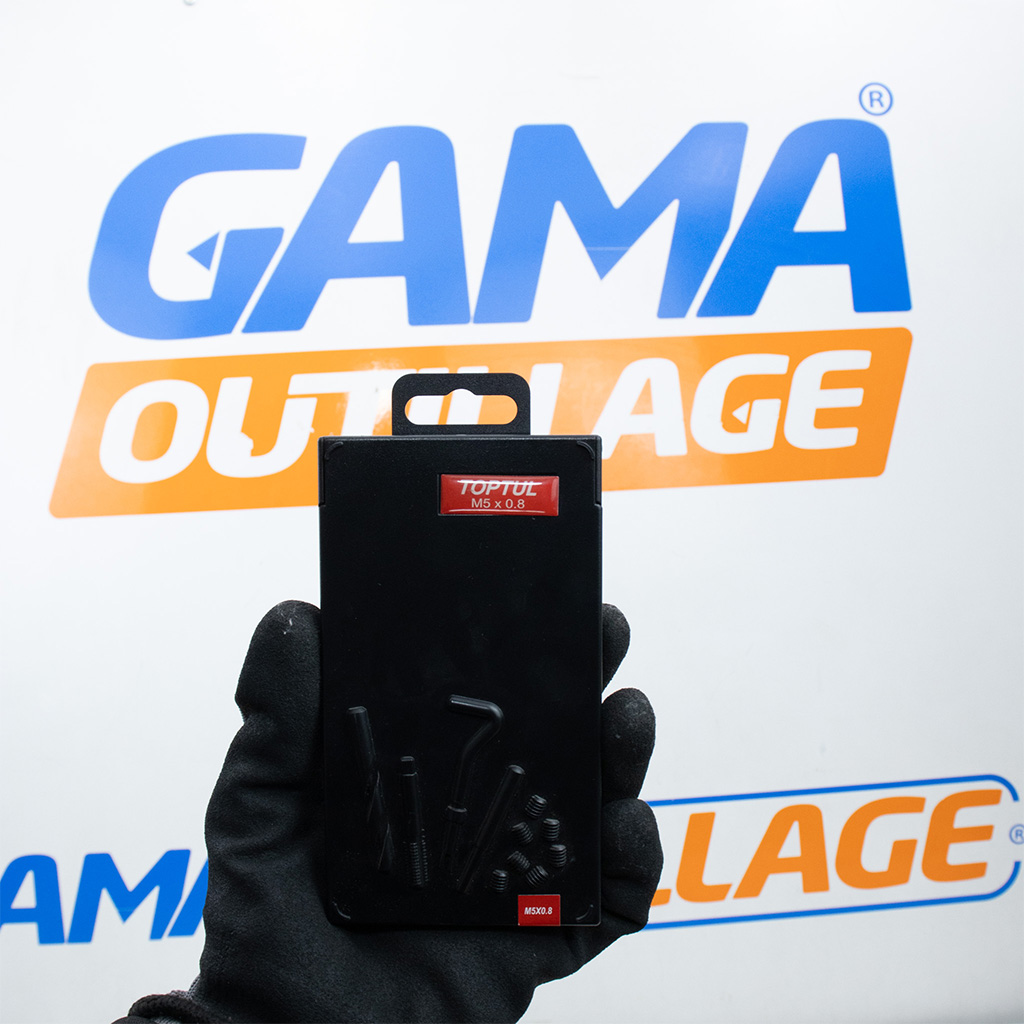 Le kit réparation filetage M5×0.8 TOPTUL JGEW2401 est conçu pour la remise en état des filetages endommagés ou arrachés au pas métrique M5×0.8.