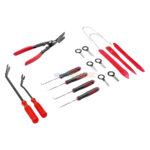 Le kit GA639 est une solution professionnelle complète pour le démontage de garnitures, panneaux de portes, clips, agrafes, autoradios et éléments de tableau de bord. Il comprend un assortiment de 168 pièces, dont des leviers en plastique anti-rayures, des pinces spéciales, des outils d’extraction de connecteurs et de clips, ainsi qu’une sélection d’attaches automobiles standards. Tous les éléments sont parfaitement organisés dans une mallette rigide à fermeture éclair, idéale pour les garagistes, carrossiers et bricoleurs automobiles exigeants.