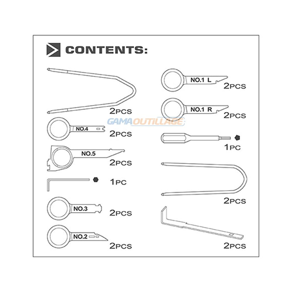 - Qualité experte, sélection de clés pour le retrait et l’installation d’autoradios par les garages, les services d’urgence et les installateurs audio de voiture spécialisés