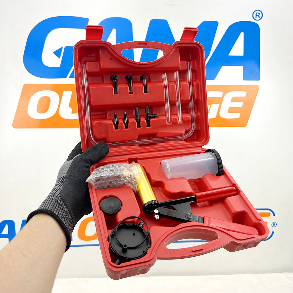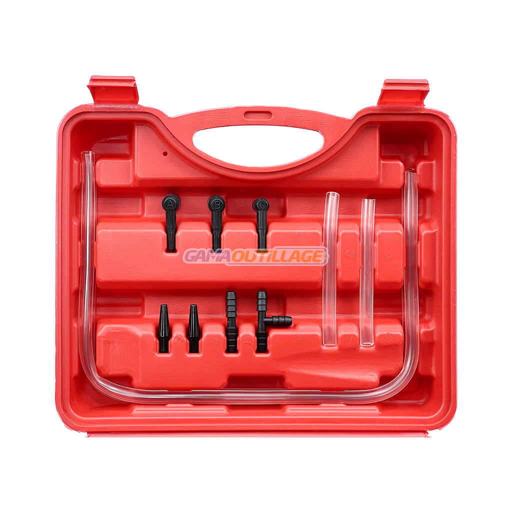 Le kit de purge de frein GA688 est conçu pour l’entretien et la purge rapide des systèmes de freinage et d’embrayage hydrauliques. Complet et prêt à l’emploi, il comprend une pompe à main avec manomètre intégré pour contrôler la pression ou le vide, des flexibles transparents, des adaptateurs multiples et un réservoir de récupération.