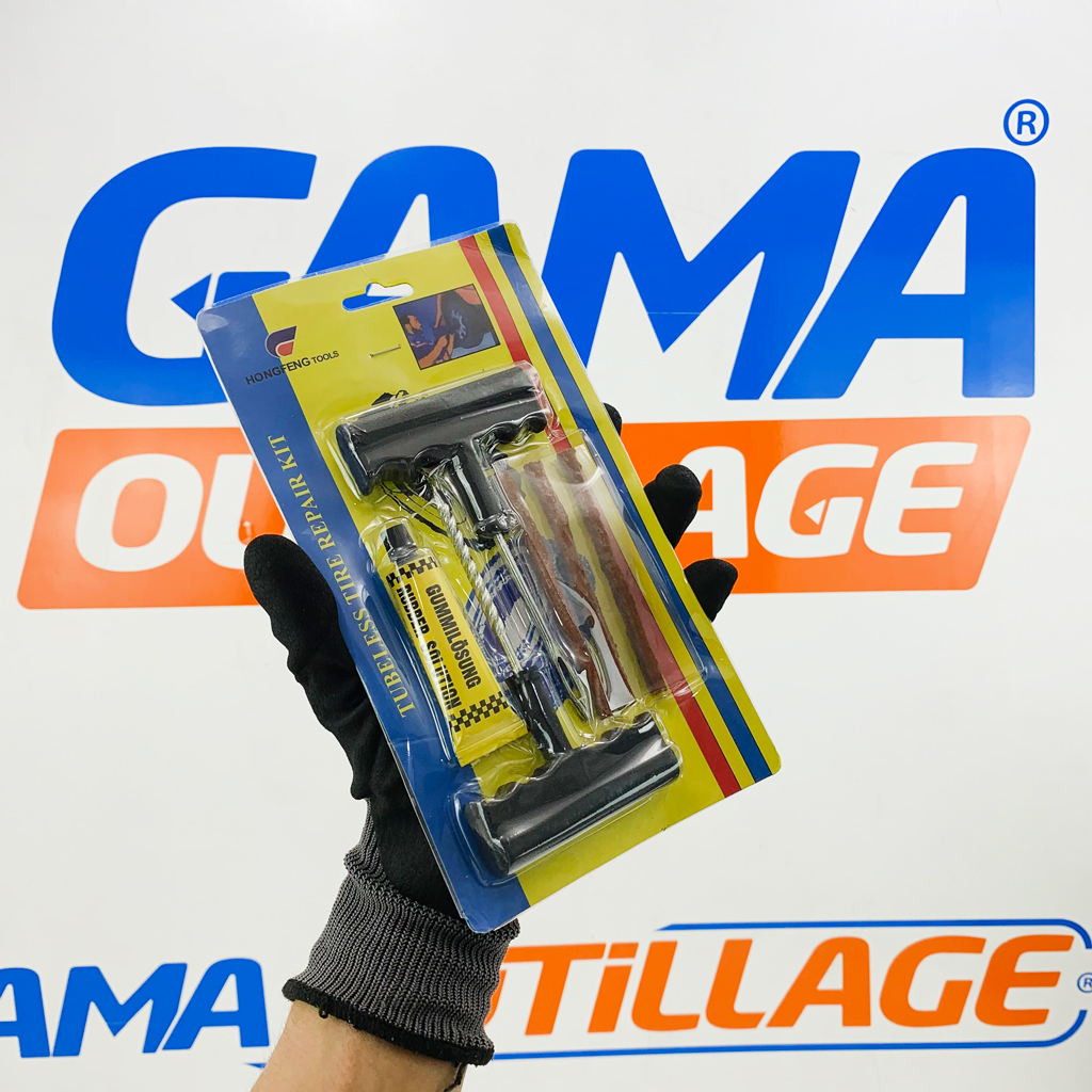 GAMAOUTILLAGE vous propose KIT REPARATION PNEU TUBLESS TM, une est un ensemble d’outils et de matériaux conçus pour réparer rapidement et efficacement une crevaison sur un pneu tubeless. Il est particulièrement utile pour les véhicules motorisés comme les voitures, les motos, les VTT et les utilitaires.