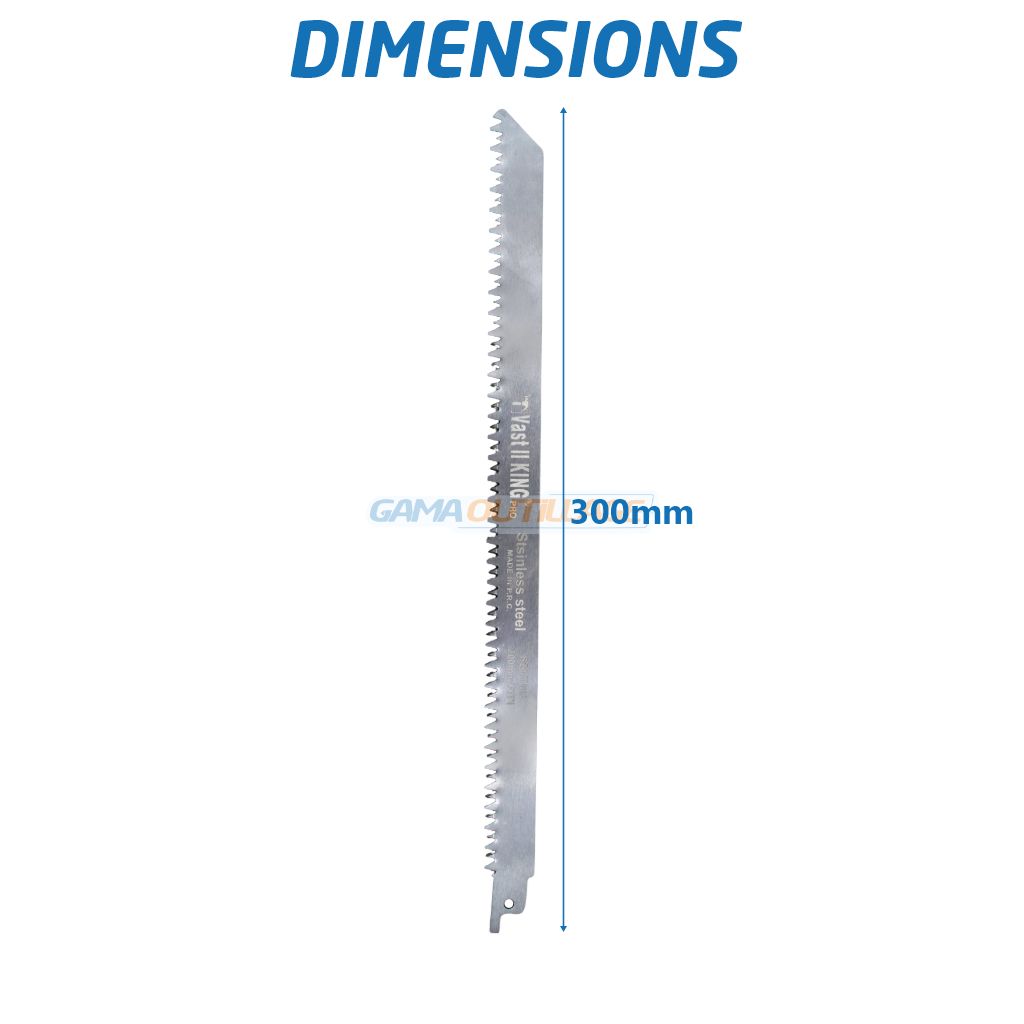 Lame de scie sabre professionnelle de 300mm en acier inoxydable (Inox) Vast King, référence S2011MB, dotée de 6 dents par pouce (TPI) pour des coupes performantes et une résistance optimale à la corrosion.