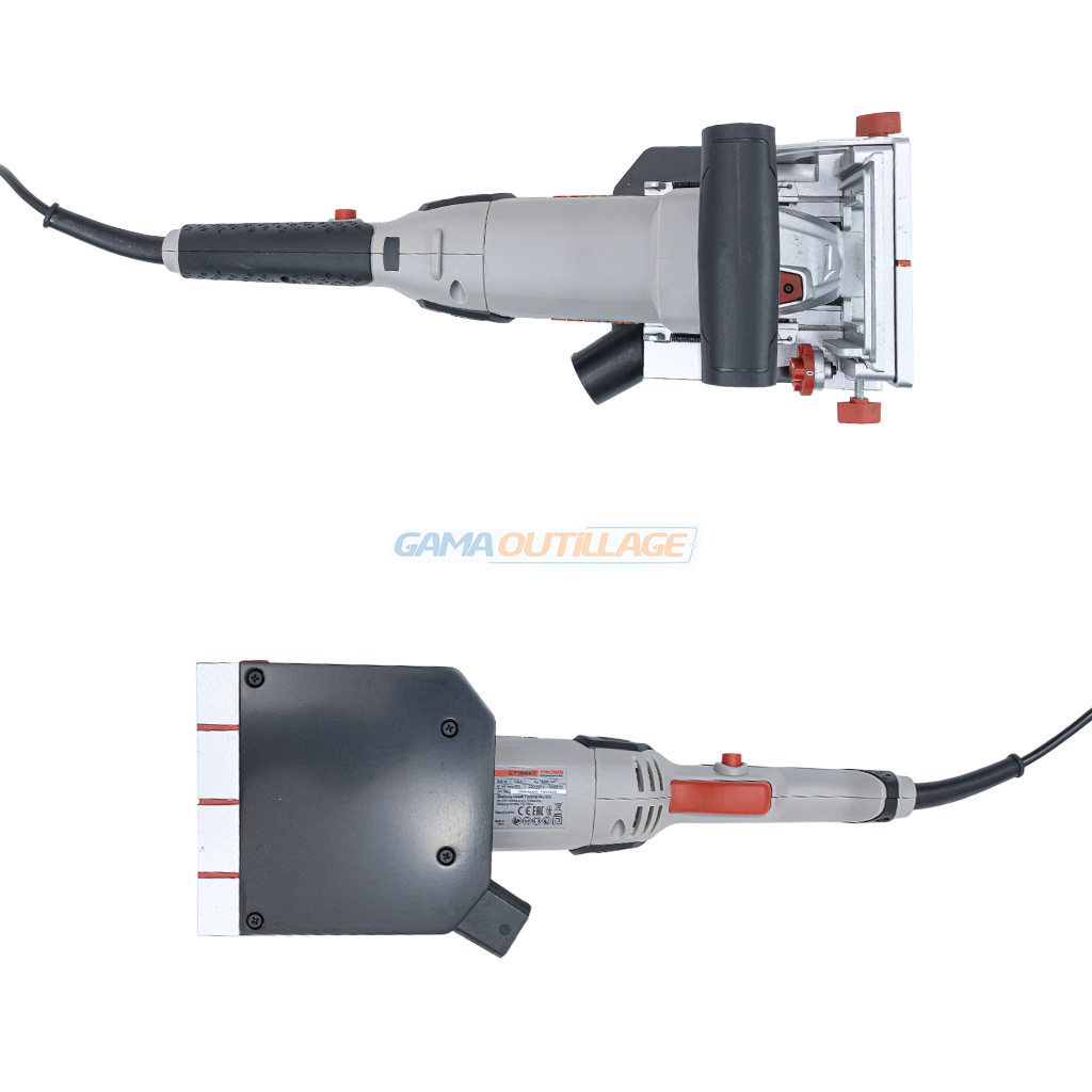 La lamelleuse 22 mm 860W CROWN CT13587 est conçue pour réaliser des assemblages en bois précis grâce à ses réglages de profondeur et d’angle clairement gradués.
