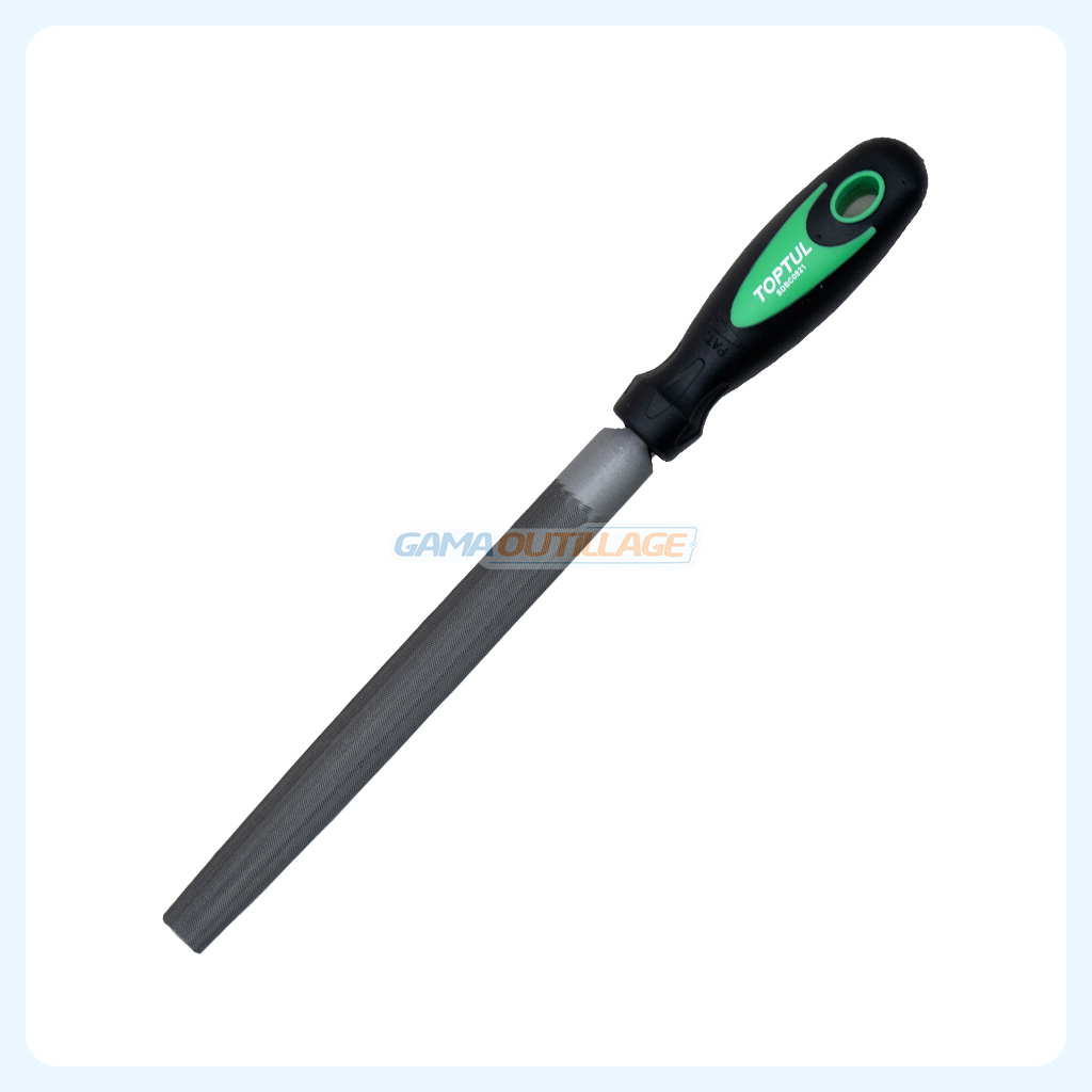 Lime demi-rond 8″ TOPTUL avec manche ergonomique, conçue pour le limage précis des surfaces planes et arrondies.