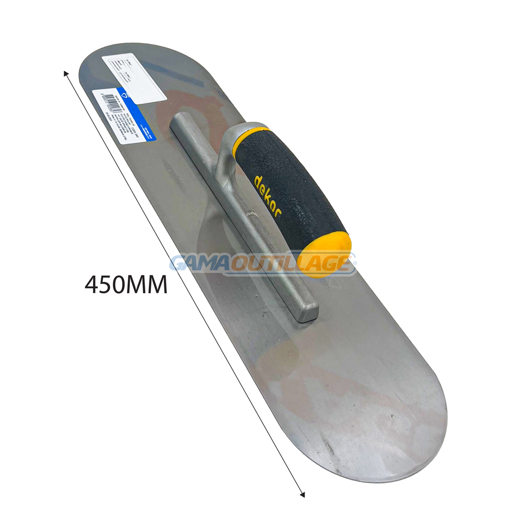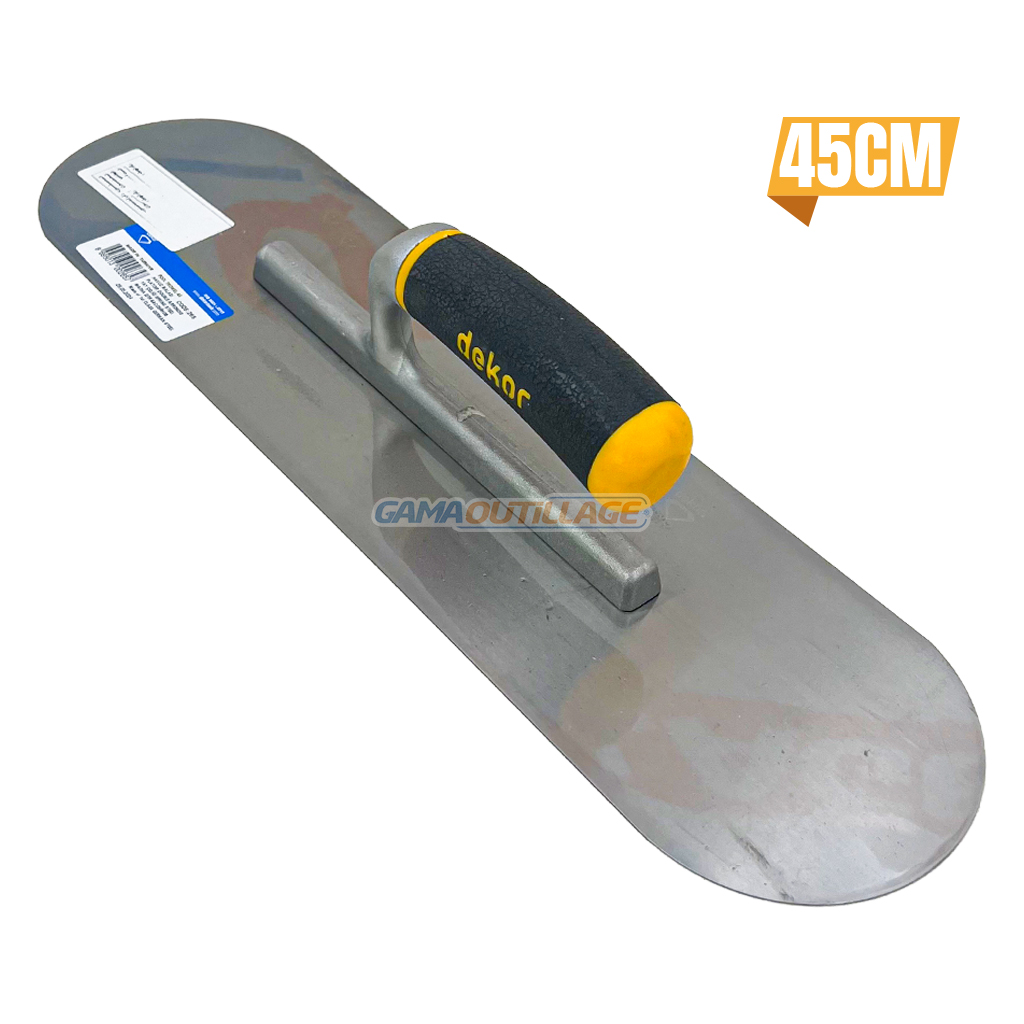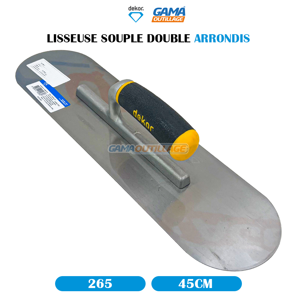 GAMAOUTILLAGE vous propose une LISSEUSE SOUPLE DOUBLE ARRONDIS 45CM DEKOR, un outil de maçonnerie ou de plâtrier servant à aplanir et à lisser les surfaces. Elle se compose généralement d’une lame métallique acier inoxydable fixée à un manche.