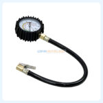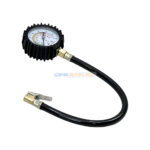 Son corps robuste avec protection en caoutchouc assure une excellente résistance aux chocs, tandis que son tuyau flexible renforcé et son embout métallique avec clip de blocage garantissent une connexion sûre et sans fuite sur la valve du pneu.