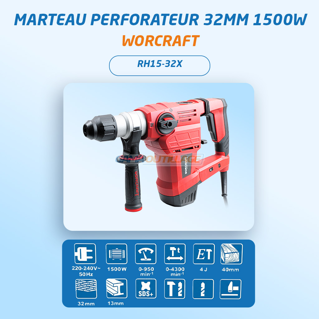 MARTEAU PERFORATEUR 32MM 1500W WORCRAFT