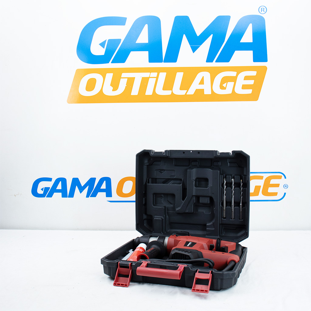 | Accessoires inclus | 3 forets SDS+ (8/10/12 mm), burin plat 250 mm, pointe 250 mm, clé de service, graisse, coffret |