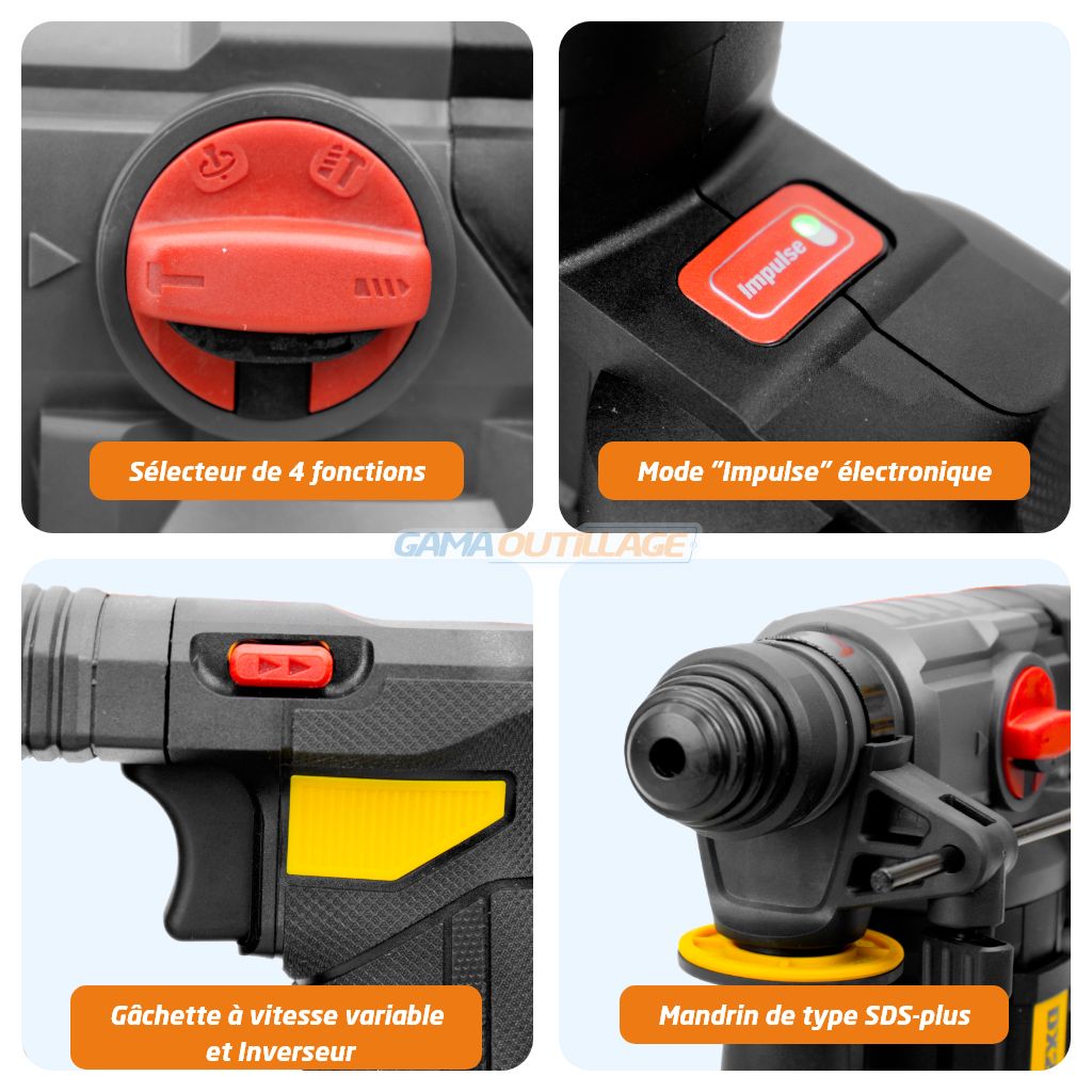 | Mode Impulse électronique facilitant le perçage sur des surfaces lisses comme le carrelage |