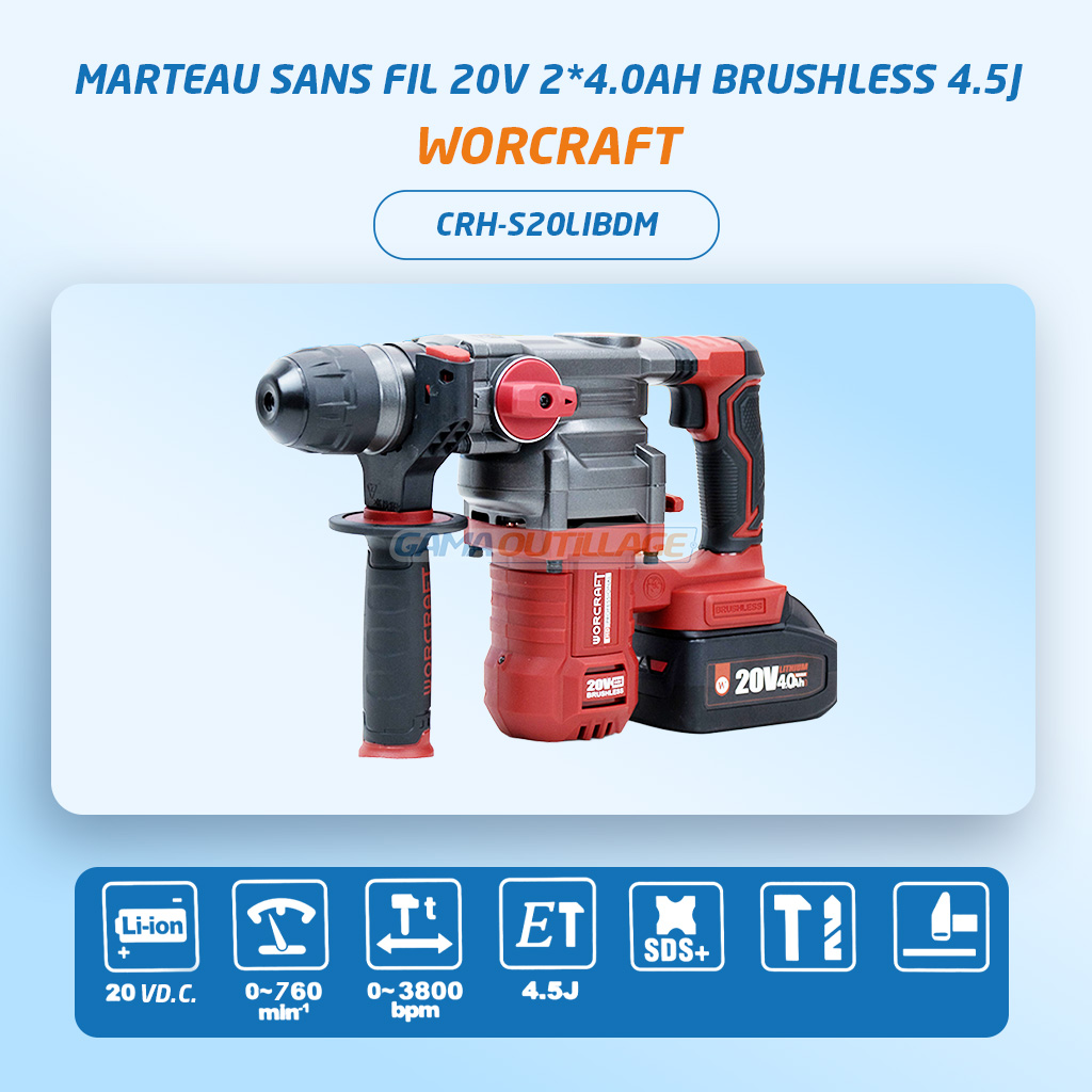 • marteau perforateur sans fil WORCRAFT CRH-S20LIBDM.