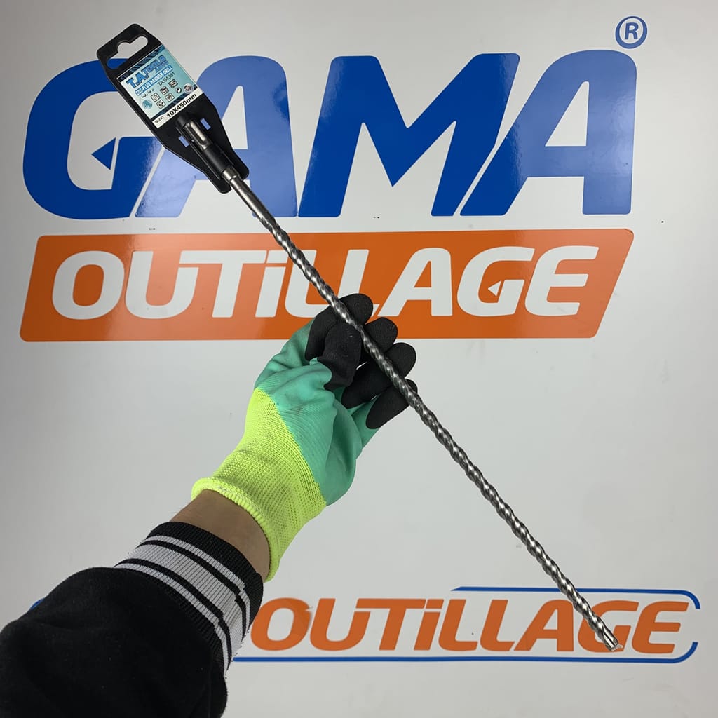 La MECHE A BÉTON 10*450 SDS+ TA offre un perçage très efficace dans le béton armé. La forme géométrique de la tête à 4 couteaux évite les coincements et les bris pour des résultats optimaux.