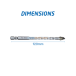 Description GénéraleMECHE CERAMIQUE 4TETES ETAGEES 8MM TA – Réf : 011979 La mèche céramique 4 têtes étagées 8mm TA est spécialement conçue pour le perçage précis des matériaux durs et fragiles tels que la céramique, le carrelage et la faïence. Grâce à sa pointe multi-têtes renforcée, elle assure une pénétration rapide et nette sans fissuration. Dotée d’une longueur totale de 120 mm et d’un emmanchement hexagonal, cette mèche garantit une excellente stabilité dans le mandrin et une transmission optimale du couple. Caractéristiques Techniques