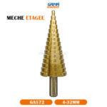 GAMAOUTILLAGE vous propose une MECHE ETAGEE 4-32MM TING CHI, est un outil de perçage unique qui permet de créer des trous de différents diamètres avec un seul outil. Le modèle 4-32mm offre une gamme étendue de tailles allant de 4mm à 32mm, ce qui en fait un outil très pratique pour de nombreux travaux de bricolage et professionnels.