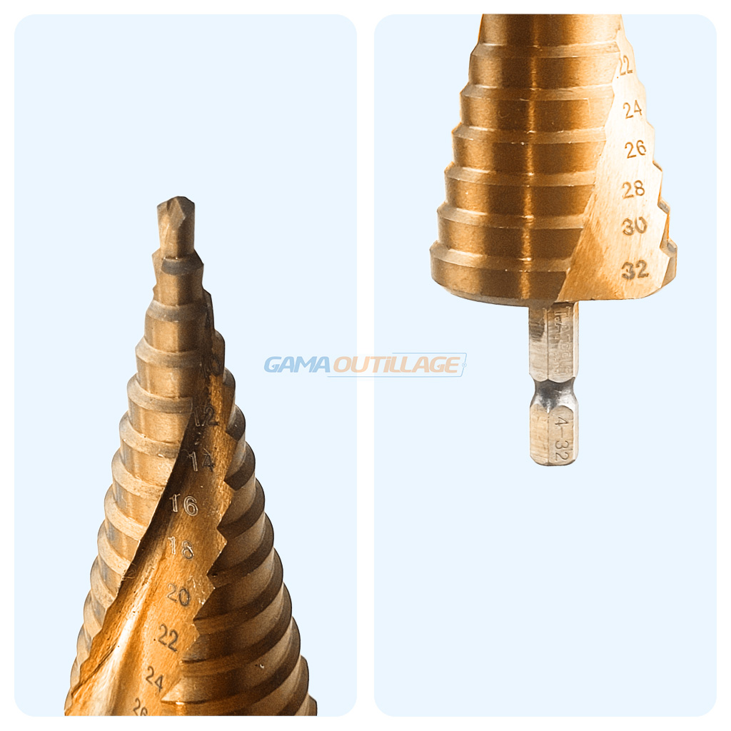 Mèche étagée 4–32 mm – Embout hexagonal (Step Drill)