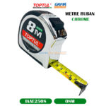 GAMAOUTILLAGE vous propose METRE RUBAN 8M CHROME TOPTUL, est un outil de mesure incontournable pour les professionnels et les particuliers. Réputé pour sa robustesse et sa précision, il est idéal pour une multitude de travaux, de la menuiserie à la construction.