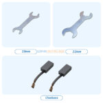 Le mélangeur est livré avec une tige de 590 mm (Ø 120 mm), deux clés de serrage (19 mm et 22 mm) ainsi qu’un jeu de charbons de rechange.