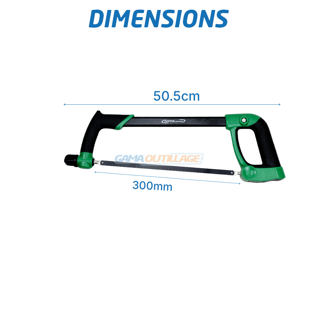 Monture scie à métaux TOPTUL MM compatible lame 300 mm, ergonomique et résistante pour travaux de coupe précis.