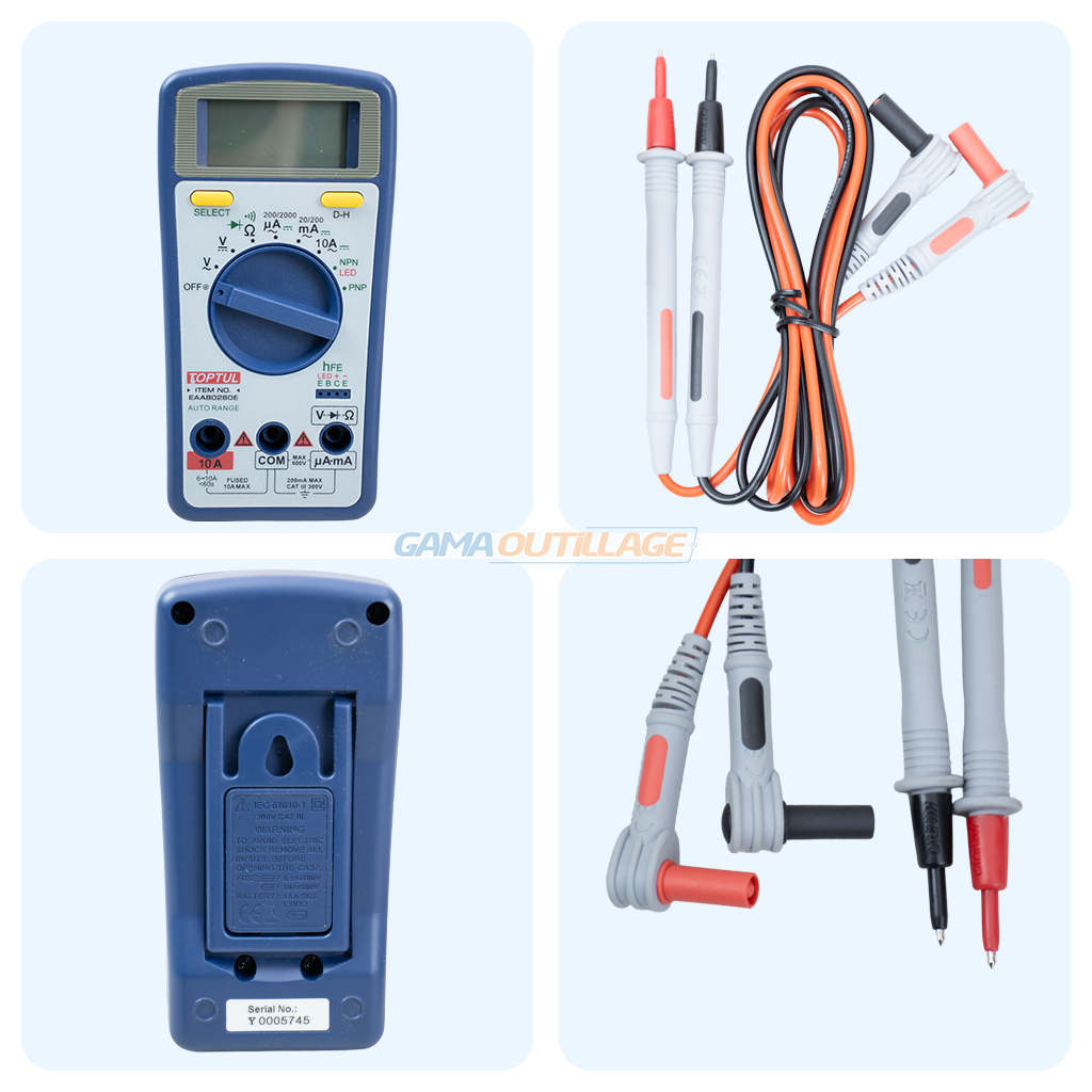 Le multimètre digital TOPTUL EAAB0260E est un appareil de mesure électronique polyvalent,