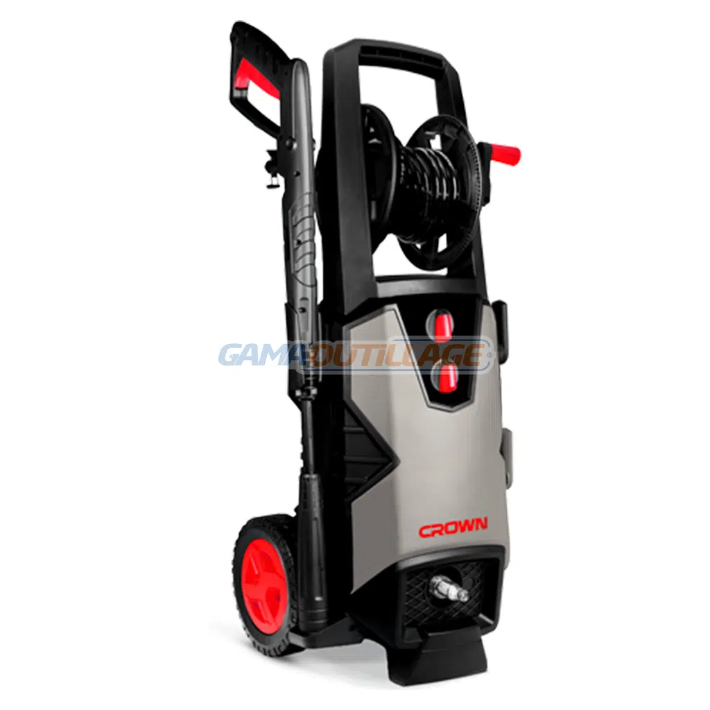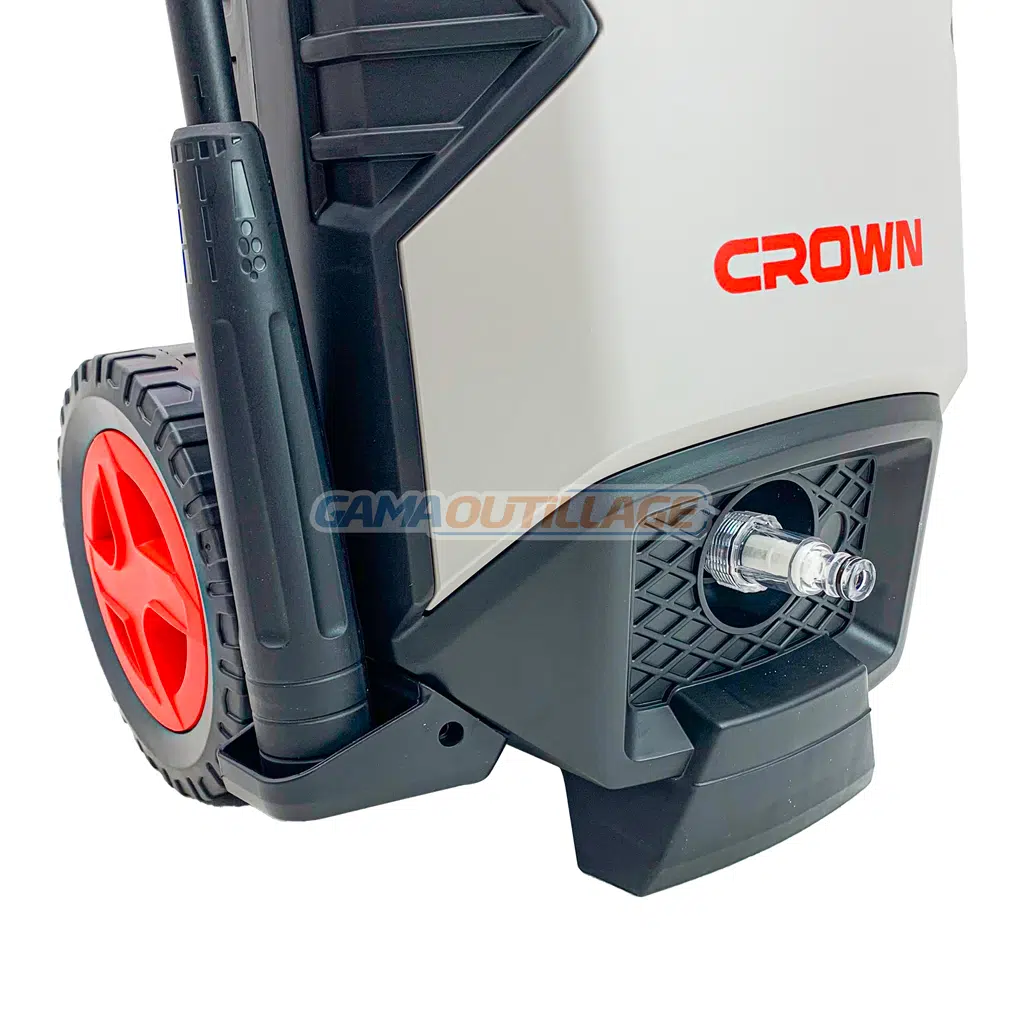 GAMAOUTILLAGE vous propose une NETTOYEUR 150BAR 2000W CROWN, est un nettoyeur haute pression conçu pour un usage domestique et semi-professionnel. Il est doté d’un moteur puissant de 2000 W et d’une pression de 150 bars, ce qui lui permet de décrasser efficacement diverses surfaces, telles que les terrasses, les voitures, les meubles de jardin, etc.