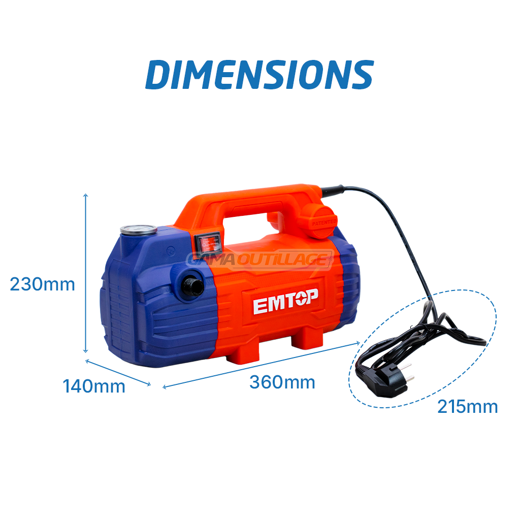 Découvrez la puissance du nettoyeur haute pression 1500W EMTOP EHPW1501. Équipé d’un moteur à induction en cuivre et d’une pression de 100 bar, c’est l’outil idéal pour un nettoyage extérieur rapide et sans effort.