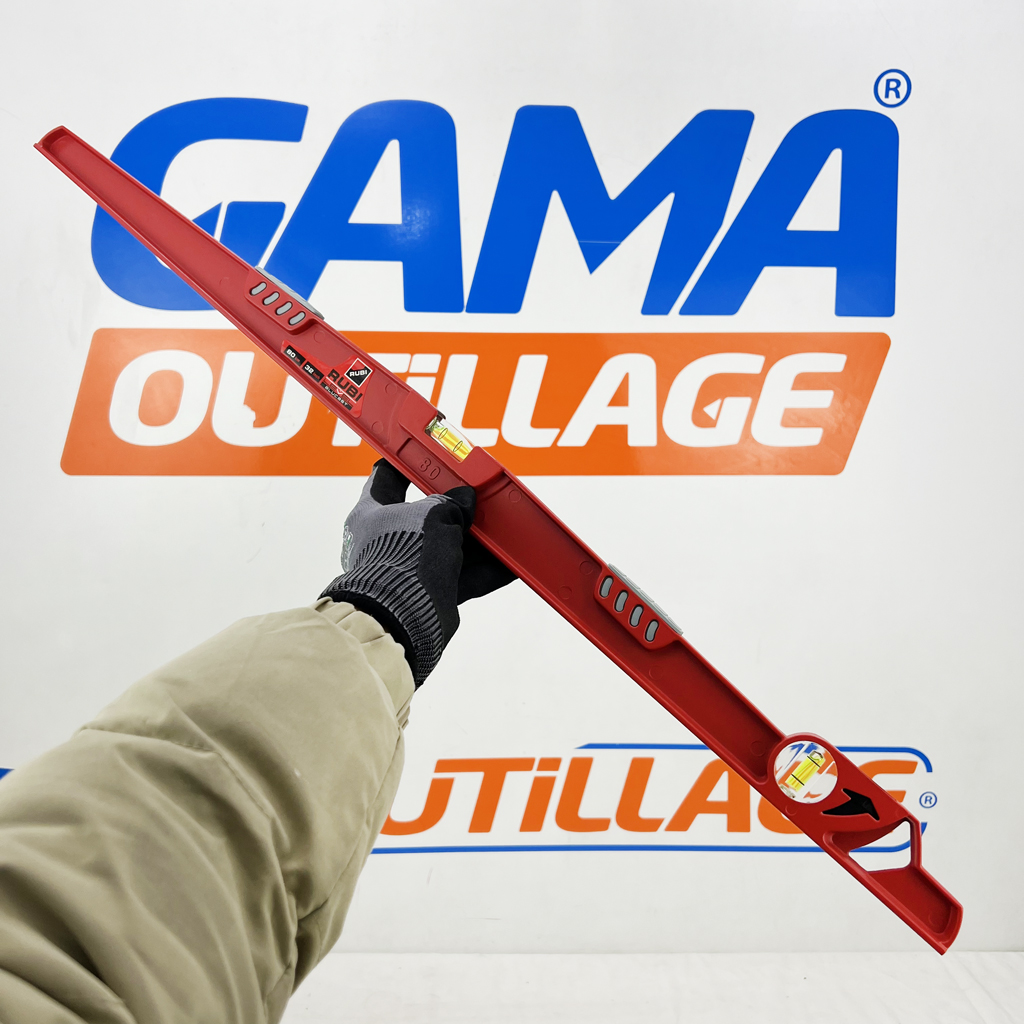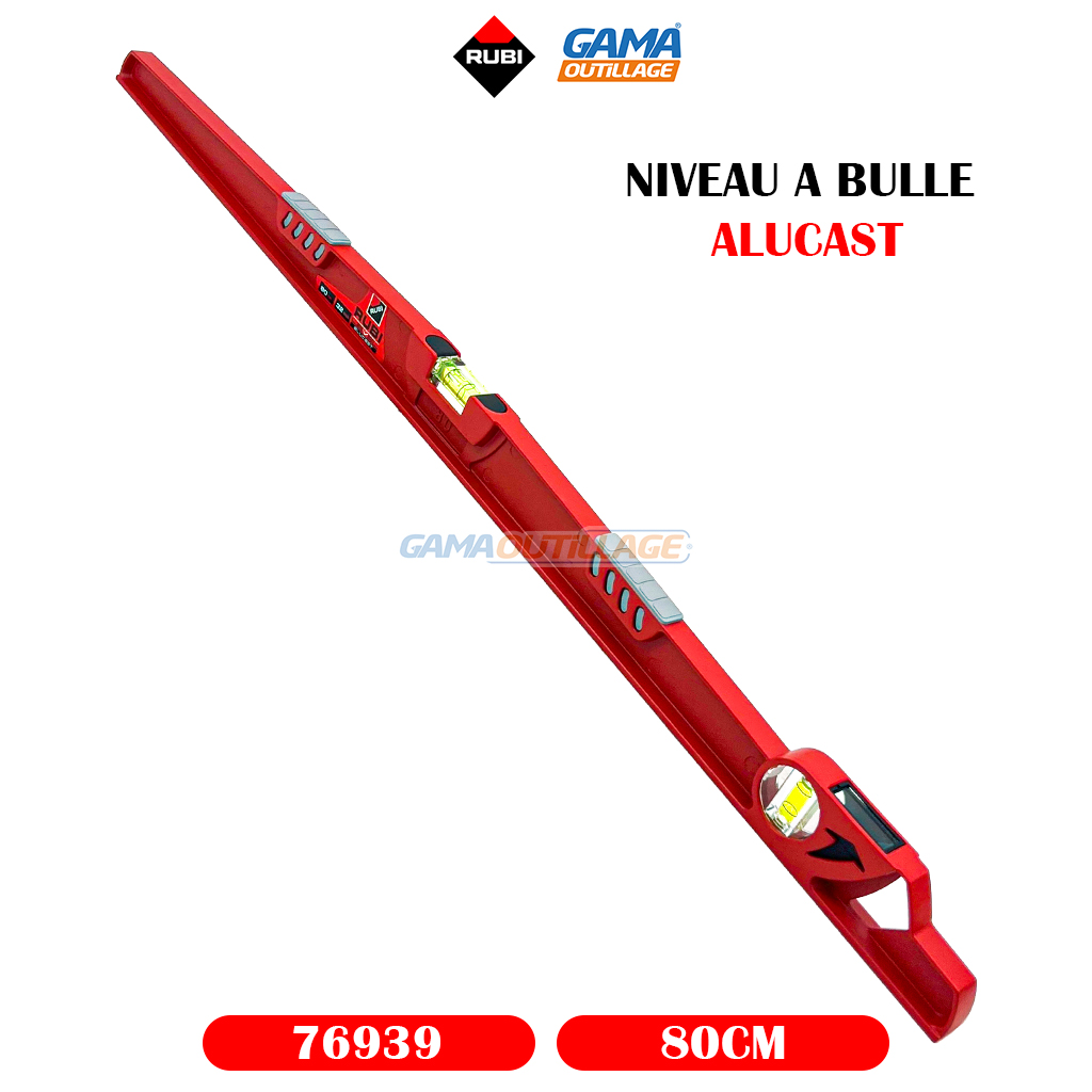GAMAOUTILLAGE vous propose une NIVEAU A BULLE ALUCAST 80CM RUBI, est un outil de mesure de niveau couramment utilisé dans la construction et le bricolage. Il est conçu pour déterminer si une surface est parfaitement horizontale ou verticale.