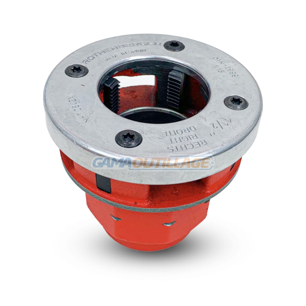 NOIX DE FILIERE 1″.1/2 40/49 ROTHENBERGER, cette outil conçu pour couper les filets sur les tuyaux. Elles sont fabriquées en acier durable et comportent une Tête de coupe à filetage, SUPER CUT, BSPT R, 1.1/2″.