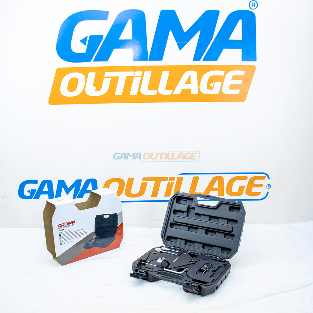 Le Kit d’outil de calage CROWN (Référence CPHWE-XC) est un ensemble de 8 pièces spécialement conçu pour le calage et le réglage de la distribution des moteurs Renault. Cet outillage de précision est indispensable pour les mécaniciens lors du remplacement de la courroie de distribution ou d’autres interventions nécessitant l’immobilisation du moteur.