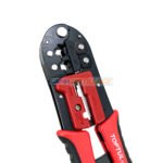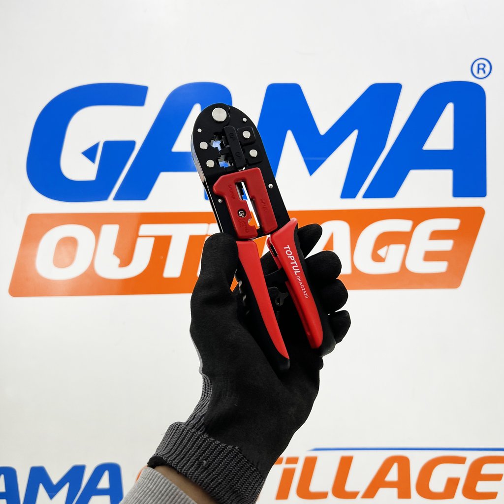 GAMAOUTILLAGE vous propose une OUTIL DE SERTISSAGE MODULAIRE TOPTUL, est un outil polyvalent conçu pour sertir les connecteurs modulaires couramment utilisés dans les applications de réseau et de télécommunications.