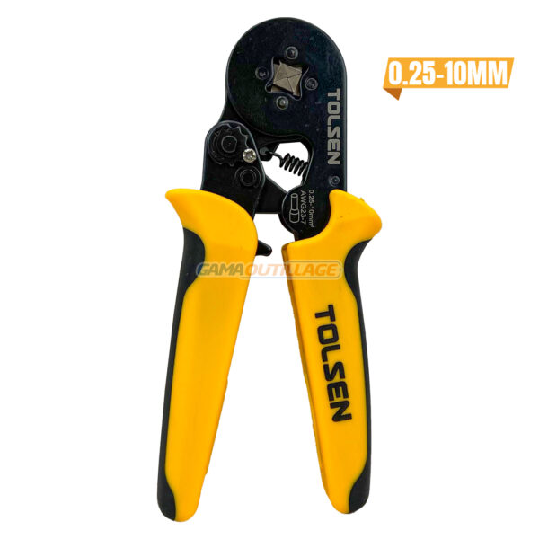 PINCE A SERTIR 0.25-10MM TOLSEN, cette outils de sertissage, il est possible de sertir de manière fiable des cosses de 0,25 à 10mm. Le dispositif de pressage s’adapte automatiquement au manchon isolant correspondant.
