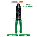 PINCE A SERTIR 9″ TOPTUL, un outil manuel utilisé pour sertir des cosses sur des fils électriques. Le sertissage garantit une connexion électrique solide et durable. La pince exerce une pression importante sur la cosse, l’écrasant autour du fil et assurant ainsi un contact optimal.