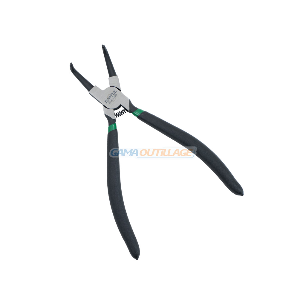 Pince circlips coudée 9″ TOPTUL conçue pour la pose et le retrait des circlips internes avec précision et confort.