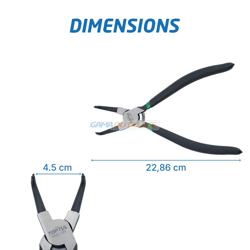 La pince circlips coudée 9″ TOPTUL DCAC1209 est conçue pour la manipulation des circlips internes.