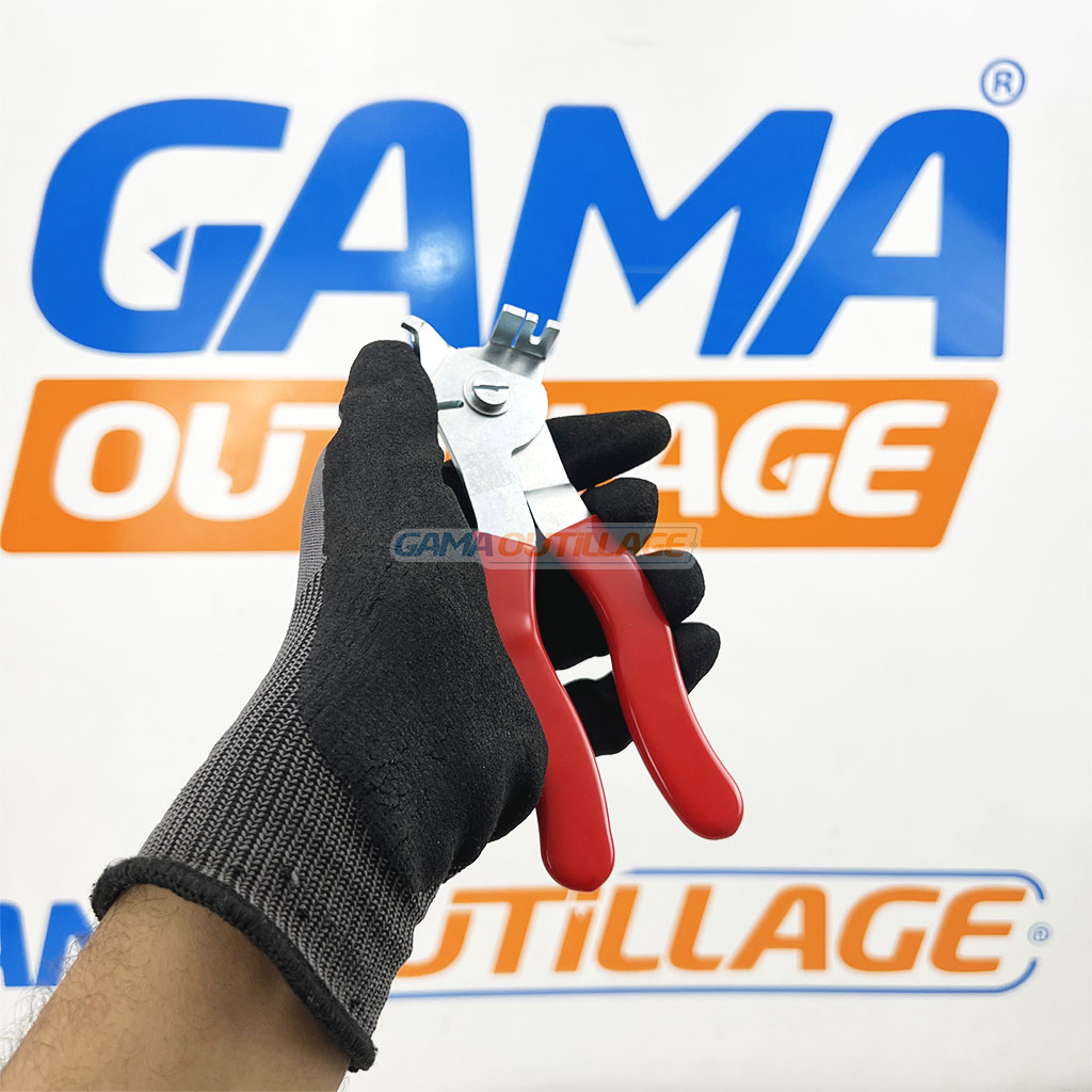 Cette pince est spécialement conçue pour l’installation correcte des colliers de soufflets de cardan de type sangle et boucle. Elle empêche tout risque d’endommagement du soufflet ou du collier lors du montage. Outil indispensable pour les mécaniciens, elle est compatible avec les soufflets A.C.I., G.K.N. ainsi que sur divers modèles de véhicules Chrysler, Plymouth et Dodge à traction avant.