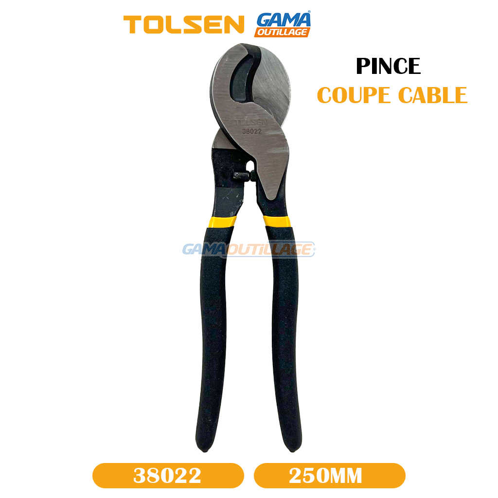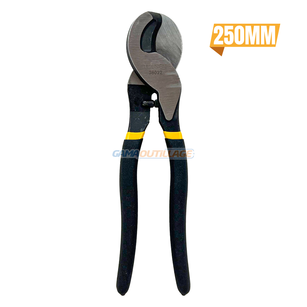 PINCE COUPE CABLE 250MM TOLSEN, est un outil manuel conçu pour couper des câbles et des fils électriques. Il est doté de lames en acier trempé robustes et tranchantes qui peuvent couper des câbles jusqu’à 09 mm de diamètre.