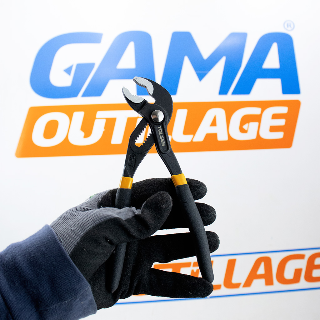 La pince multiprise à réglage rapide Tolsen, référence 10328, est un outil de la gamme Industrial conçu pour offrir une polyvalence et une fiabilité exceptionnelles. Fabriquée en acier Chrome Vanadium (CrV) avec une finition noire anticorrosion, cette pince de 180 mm (7 pouces) se distingue par son mécanisme de réglage rapide à 11 positions. Ce système permet d’ajuster l’ouverture des mâchoires de manière instantanée et précise jusqu’à 25 mm, facilitant ainsi le travail sur divers types de boulons et tuyauteries. Ses poignées gainées en PVC assurent une prise en main confortable et sécurisée, même lors d’efforts de serrage intenses.