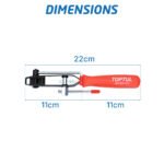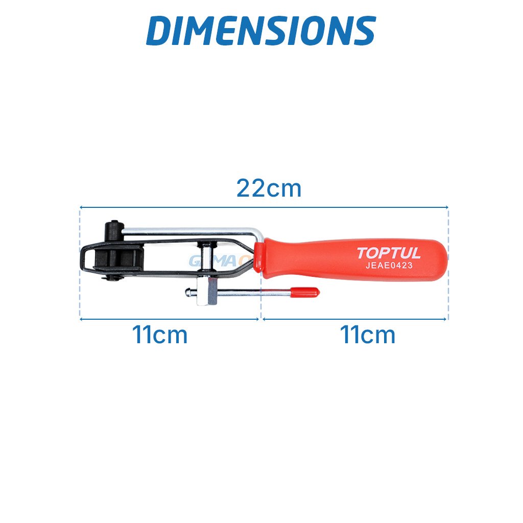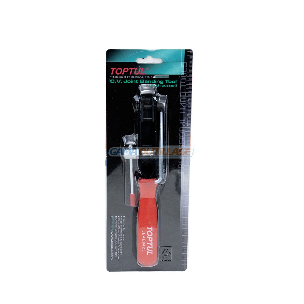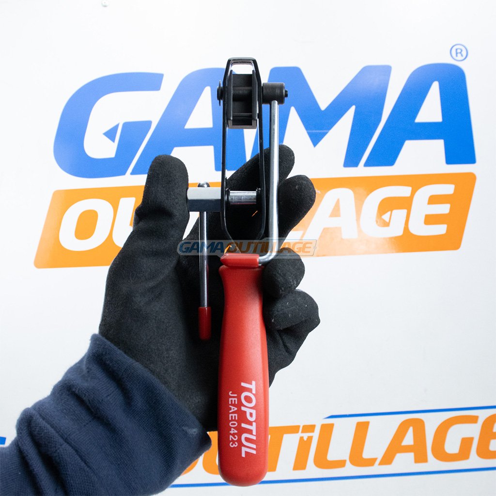 La pince pour collier de cardan TOPTUL JEAE0423 est un outil professionnel conçu pour la pose et la coupe des colliers de cardan de type C.V. Utilisée principalement en mécanique automobile, elle permet de tendre précisément le collier avant de le couper proprement, garantissant une fixation fiable et durable.