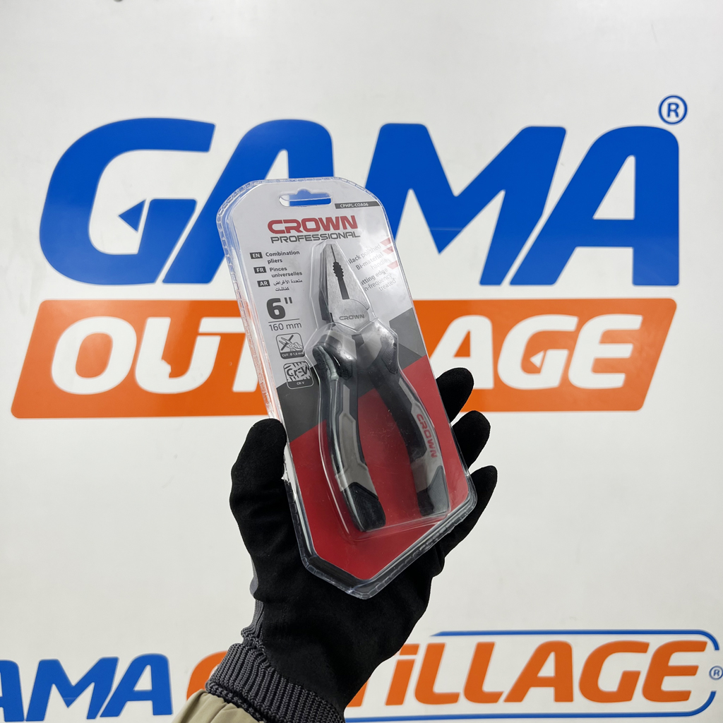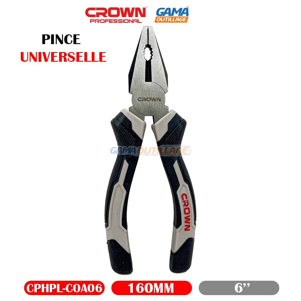 PINCE UNIVERSELLE 160MM CROWN, est un outil polyvalent conçu pour saisir et manipuler une grande variété de matériaux, tout en offrant une protection électrique grâce à son isolation. La longueur de 160mm (environ 6 pouces) en fait un outil pratique pour de nombreuses tâches.