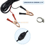 Installation simple avec pinces crocodiles pour batterie 24V.